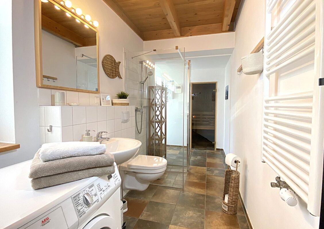 • Waschmaschine (Münzbetrieb, 3 € pro Nutzung)