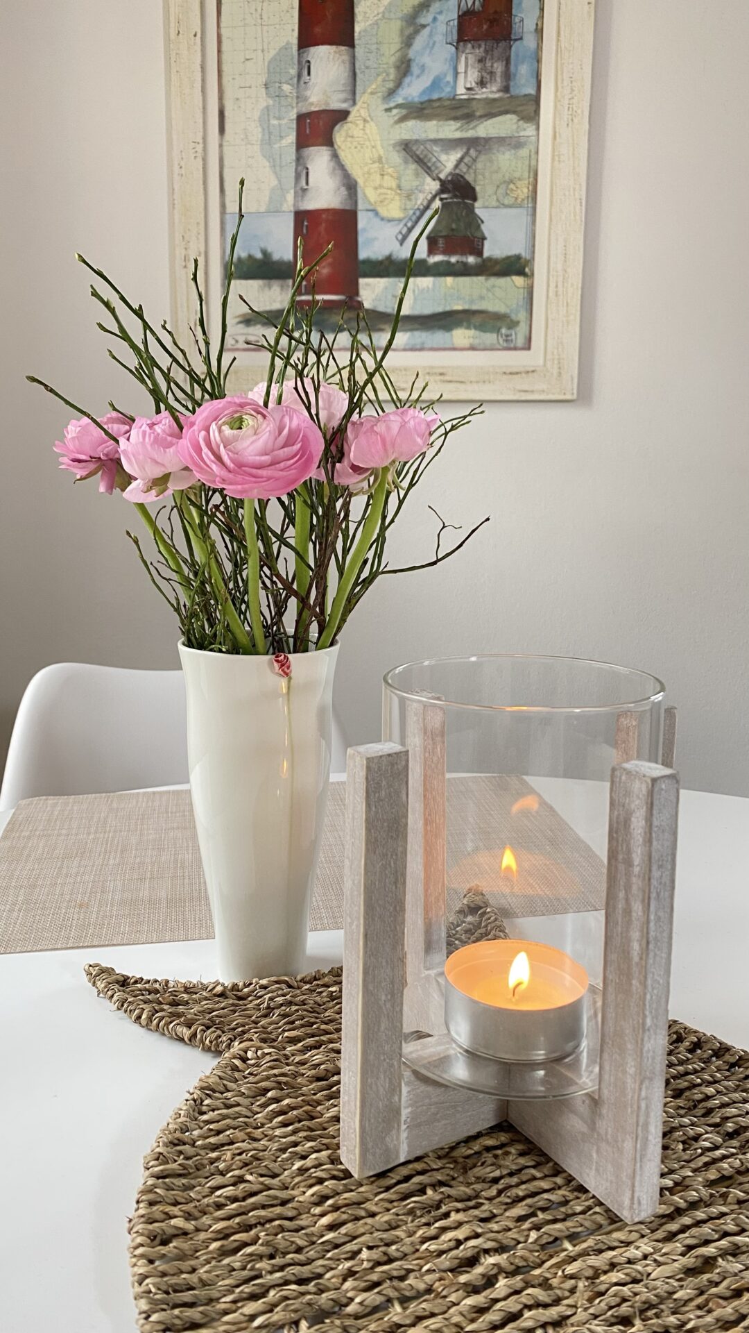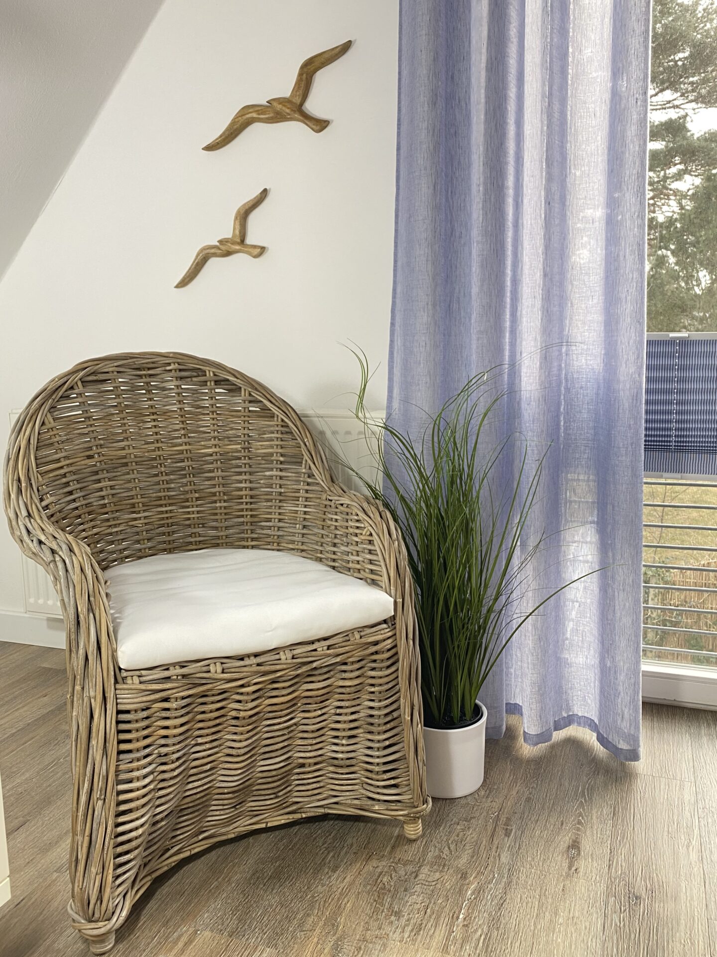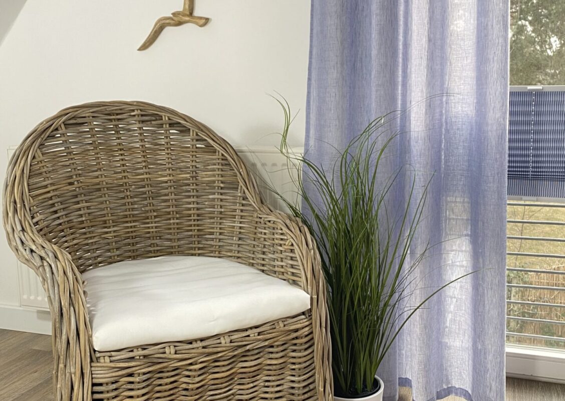 Eine warme, authentische Wohlfühlatmosphäre erhält die `Möwenkate´ durch maritime Dekoration, stimmungsvolle Fotografien, Treibholzkunst, Seeglasobjekte und handgenähte Details – meist aus dem eigenen Atelier.