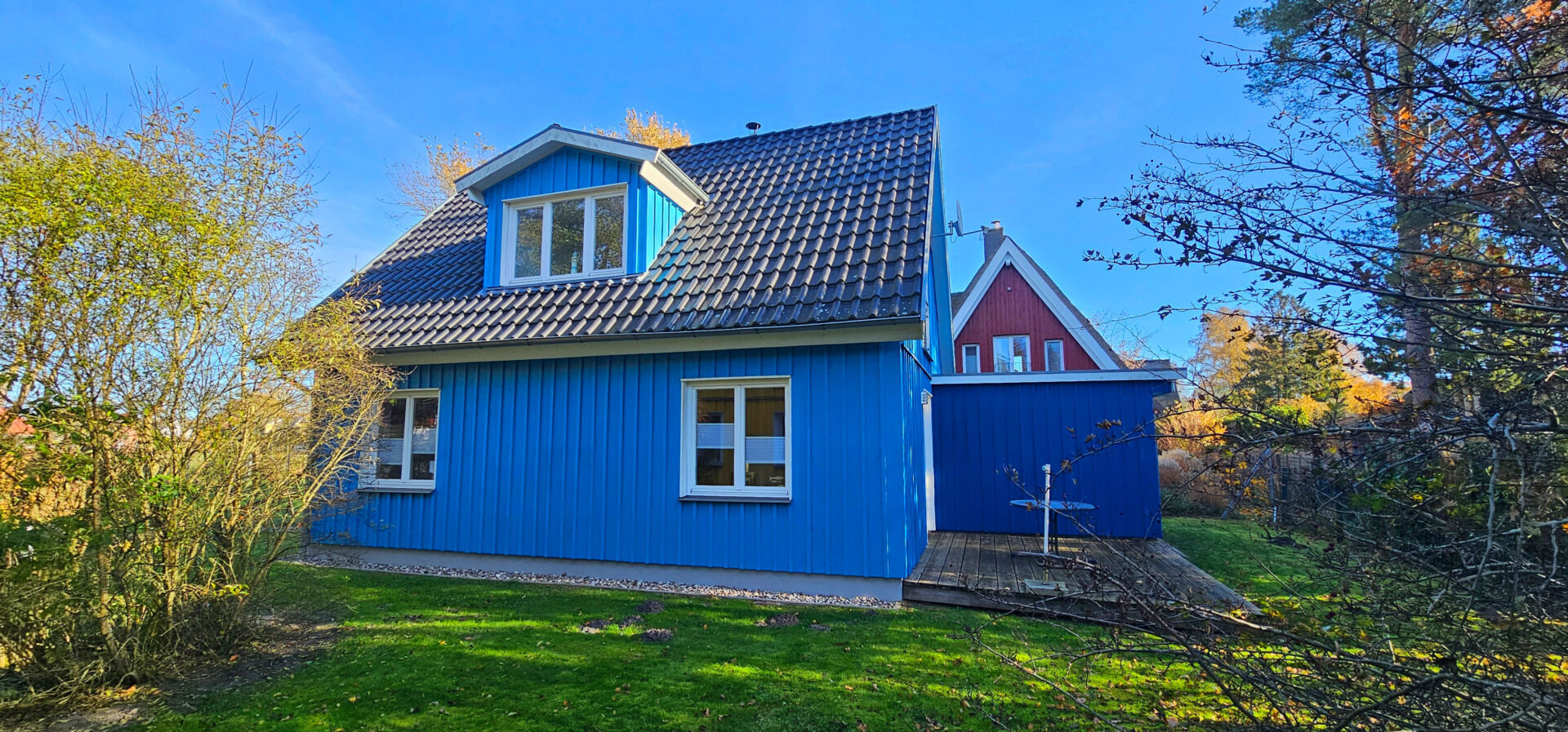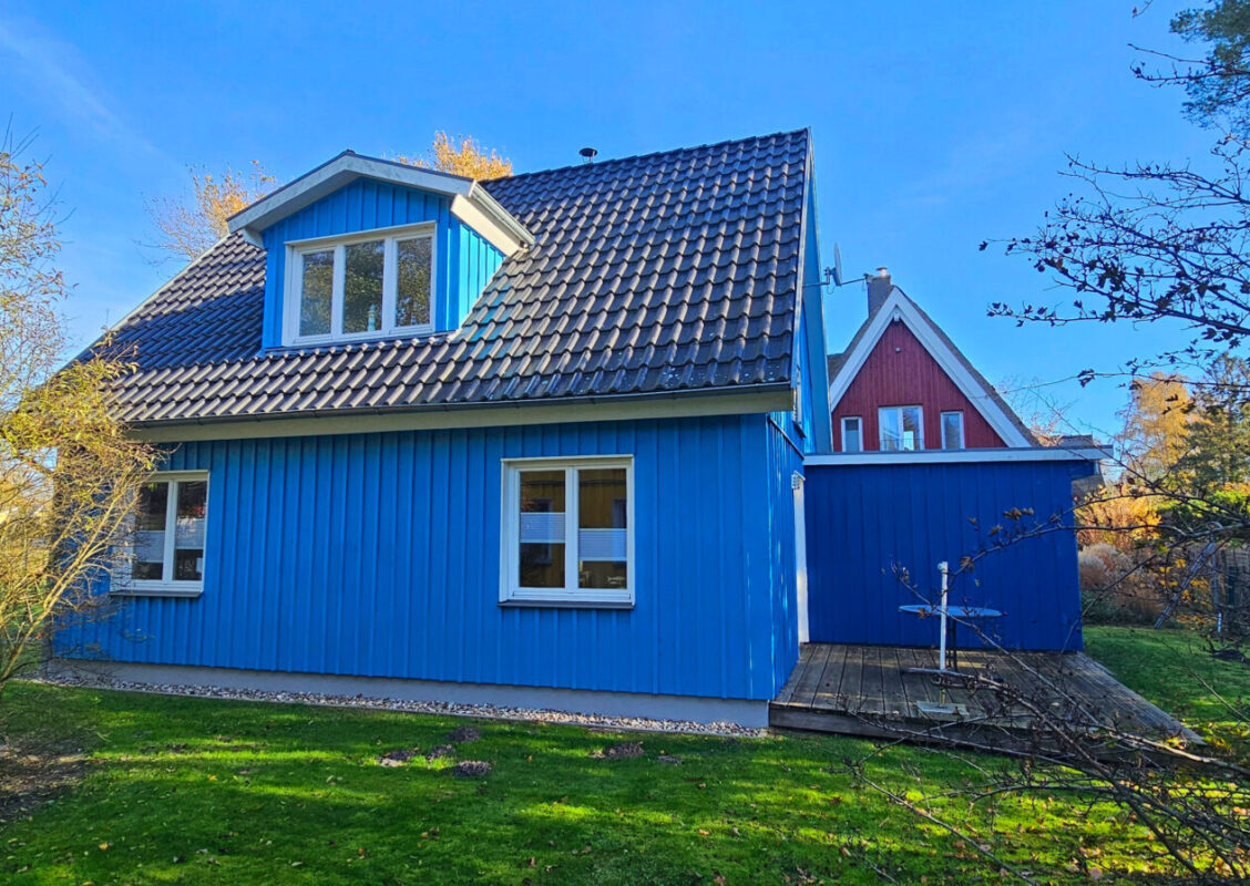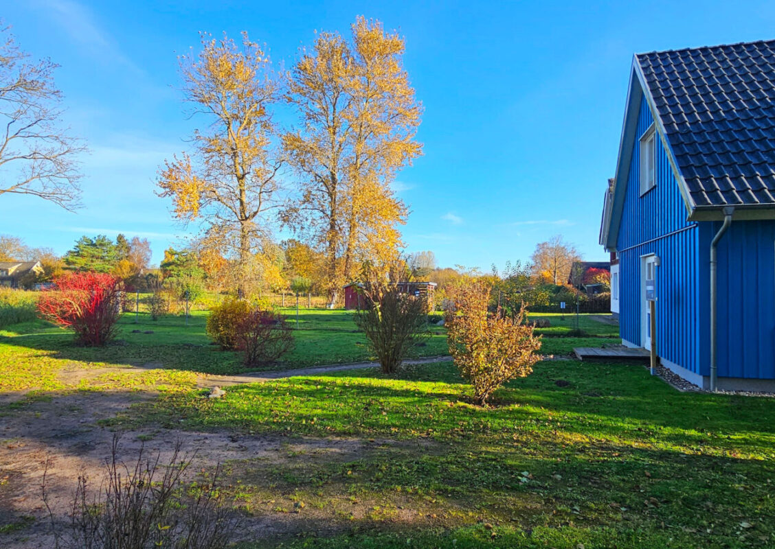 Die `Möwenkate´ liegt gemeinsam mit der `Dünenkate´ auf einem über 1.150 qm großen Endgrundstück – eingebettet in Grün, am stillen Ende des Stückwegs im Ostseebad Prerow.