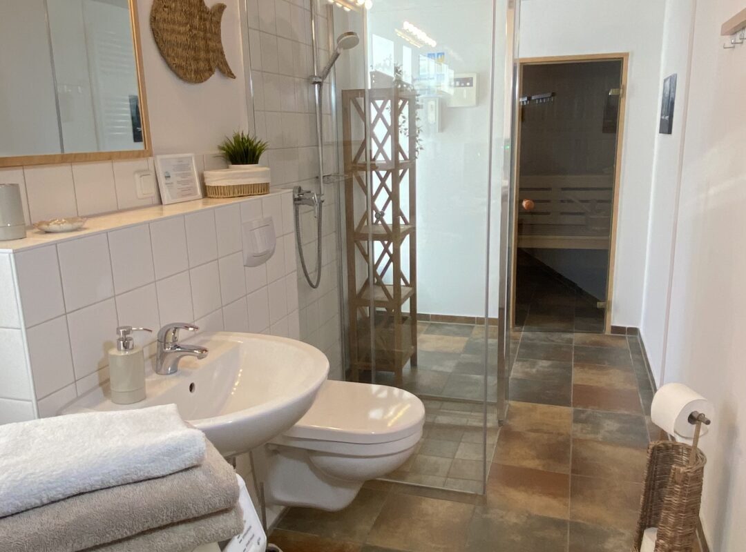 • Sauna (Chip gibt es an der Rezeption für 8 Euro = 4 Std.)