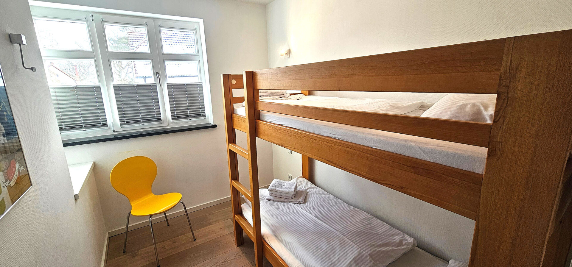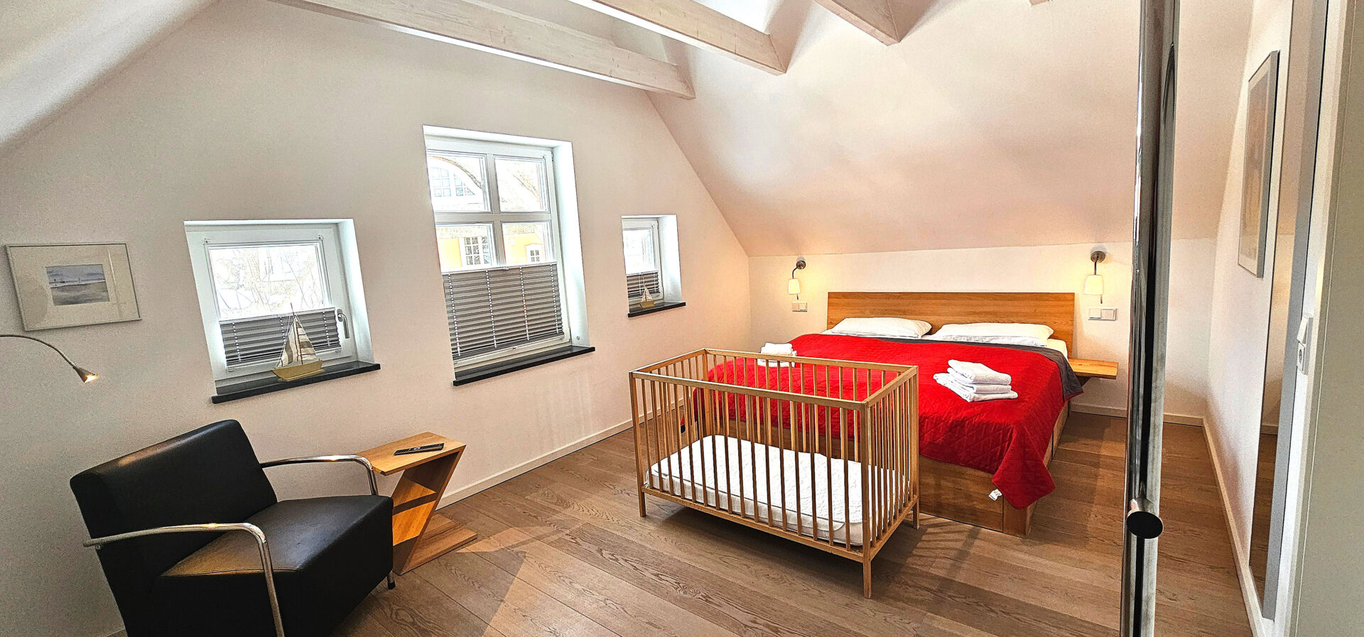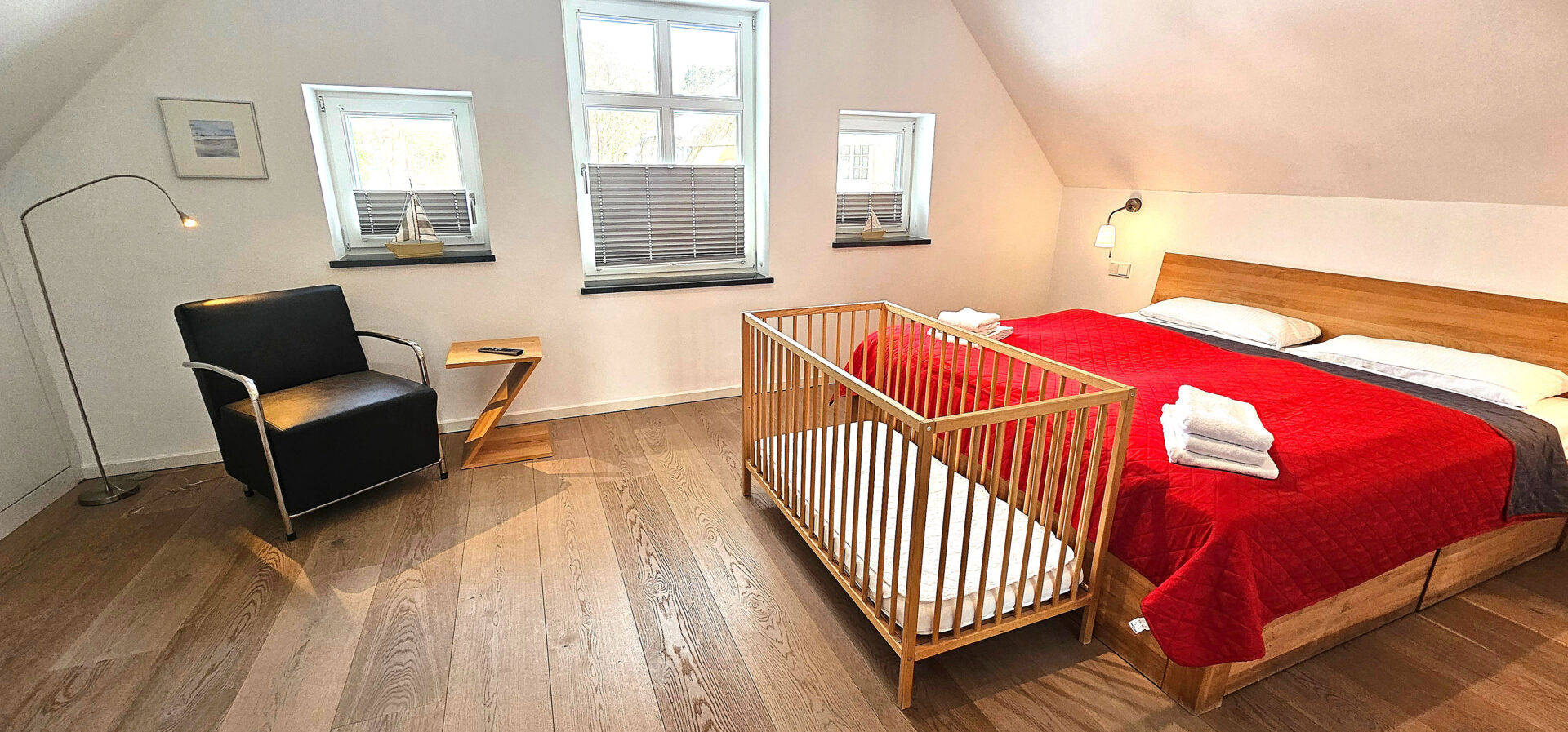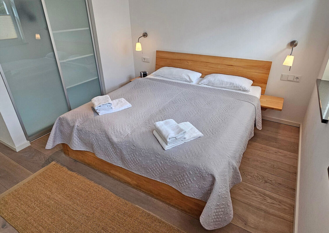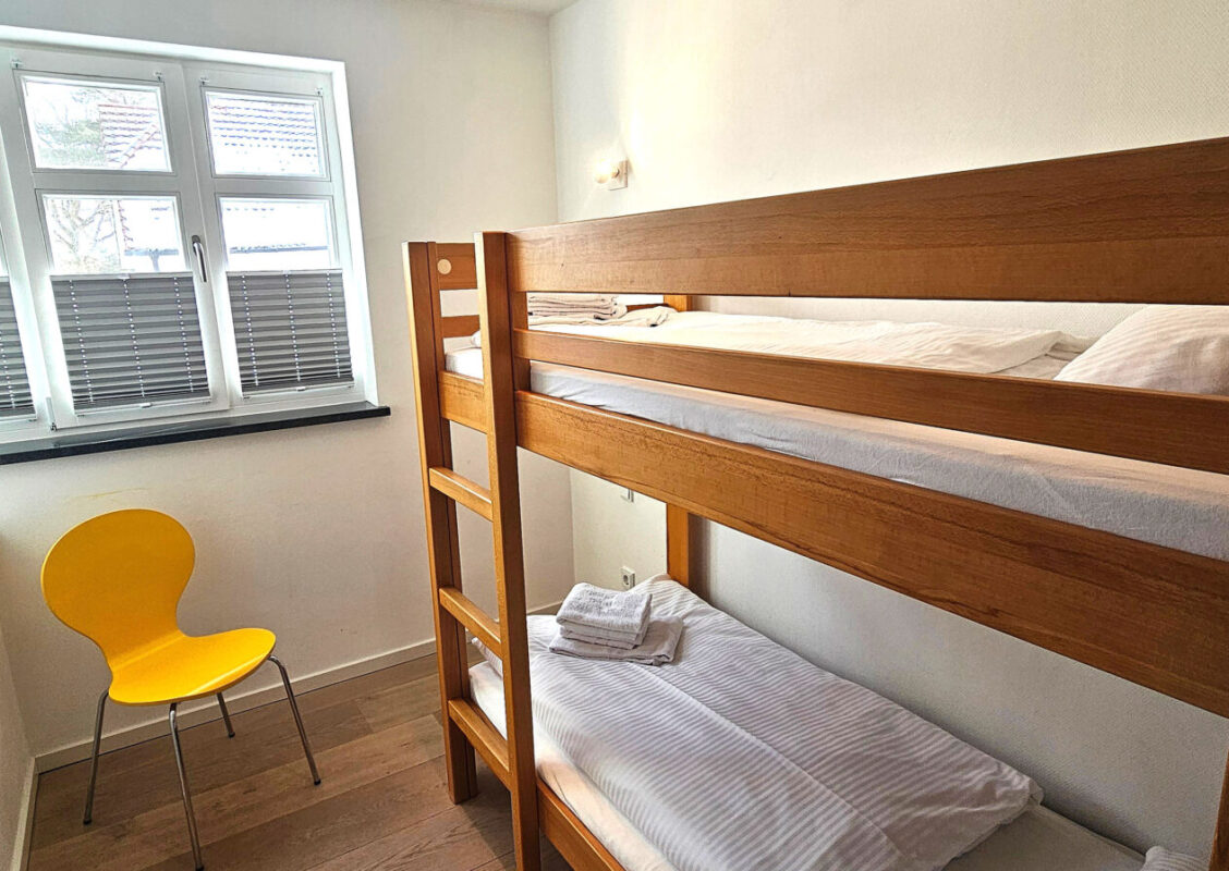 Drei Schlafzimmer mit Doppelbetten (180 x 200 cm) sowie ein Kinderzimmer mit einem Doppelstockbett (90 x 200 m) sorgen für entspannten Schlafkomfort.