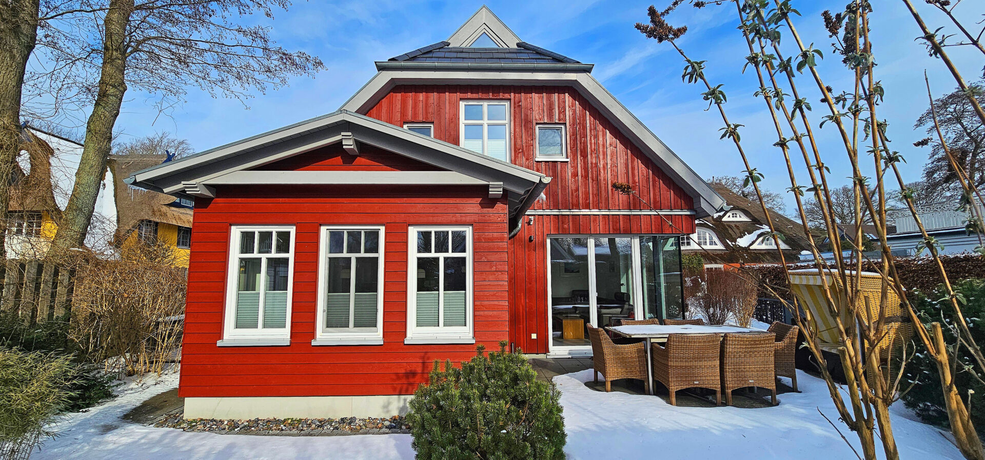 Ein modernes, großzügiges Ferienhaus mit wunderschönem Garten und 2 separaten Terrassen heißt Sie und Ihre Familie herzlich willkommen.