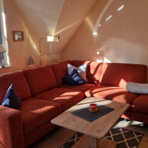 Fernab des Trubels am Strand oder der Ortsmitte ist diese gemütliche Ferienwohnung in ruhiger Lage genau das, was es für einen ruhigen und erholsamen Urlaub zu zweit braucht. Ihre AusZeit im Grünen, großer Balkon (Westausrichtung) mit Gartenmöbeln, Obergeschoss (ca. 40 qm) – von hier aus ist der Nationalpark in wenigen Gehminuten erreicht. Strand und Ortsmitte mit Geschäften sind mit dem Fahrrad schnell erkundet, zum Strand ist es ca. 1 km.