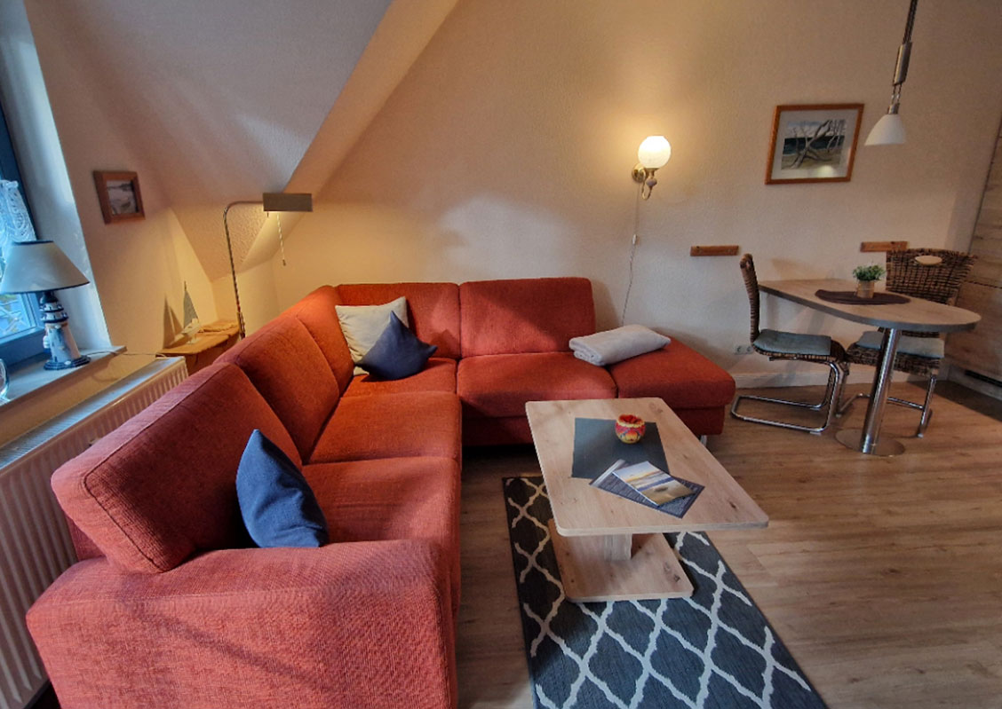 Fernab des Trubels am Strand oder der Ortsmitte ist diese gemütliche Ferienwohnung in ruhiger Lage genau das, was es für einen ruhigen und erholsamen Urlaub zu zweit braucht. Ihre AusZeit im Grünen, großer Balkon (Westausrichtung) mit Gartenmöbeln, Obergeschoss (ca. 40 qm) – von hier aus ist der Nationalpark in wenigen Gehminuten erreicht. Strand und Ortsmitte mit Geschäften sind mit dem Fahrrad schnell erkundet, zum Strand ist es ca. 1 km.